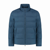Мужская куртка-пуховик в минималистичном стиле тёмно-синего цвета — лаконичный дизайн, стёганый утеплитель и застёжка-молния. Идеально подходит для городской зимы.