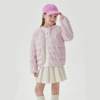 Легкая розовая куртка-пуховик без воротника на кнопках для девочек. OEM/ODM-производитель для детей, базовая многослойная одежда.